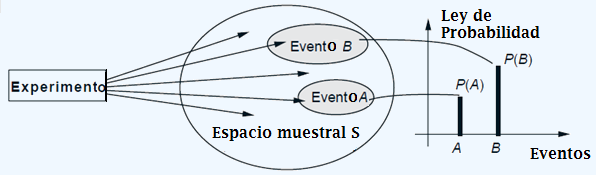 | Elementos de un modelo de probabilidad - El espacio muestral S, que es el conjunto de todos los posibles resultados de un experimento aleatorio. - La Ley de Probabilidad, que asigna a un evento A de posibles resultados, un número no negativo P(A) que se llama la probabilidad de A que cuantifica el "chance" de que ocurra A. |