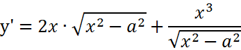 Expresamos raíces como potencias: aplicamos la regla de la cadena: Tenga en cuenta que al derivar y se debe agregar y' Se realizan los procedimientos algebraicos: Agrupamos y factorizamos y': Despejamos y' y reorganizamos volviendo a la forma de raíces: Simplificamos y reorganizamos la solución final |