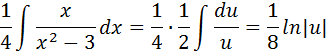 Luego la suma de ambos resultados por las propiedades de los logaritmos, es: ![]() ![]() Para la última integral, se realiza la sustitución: ![]()